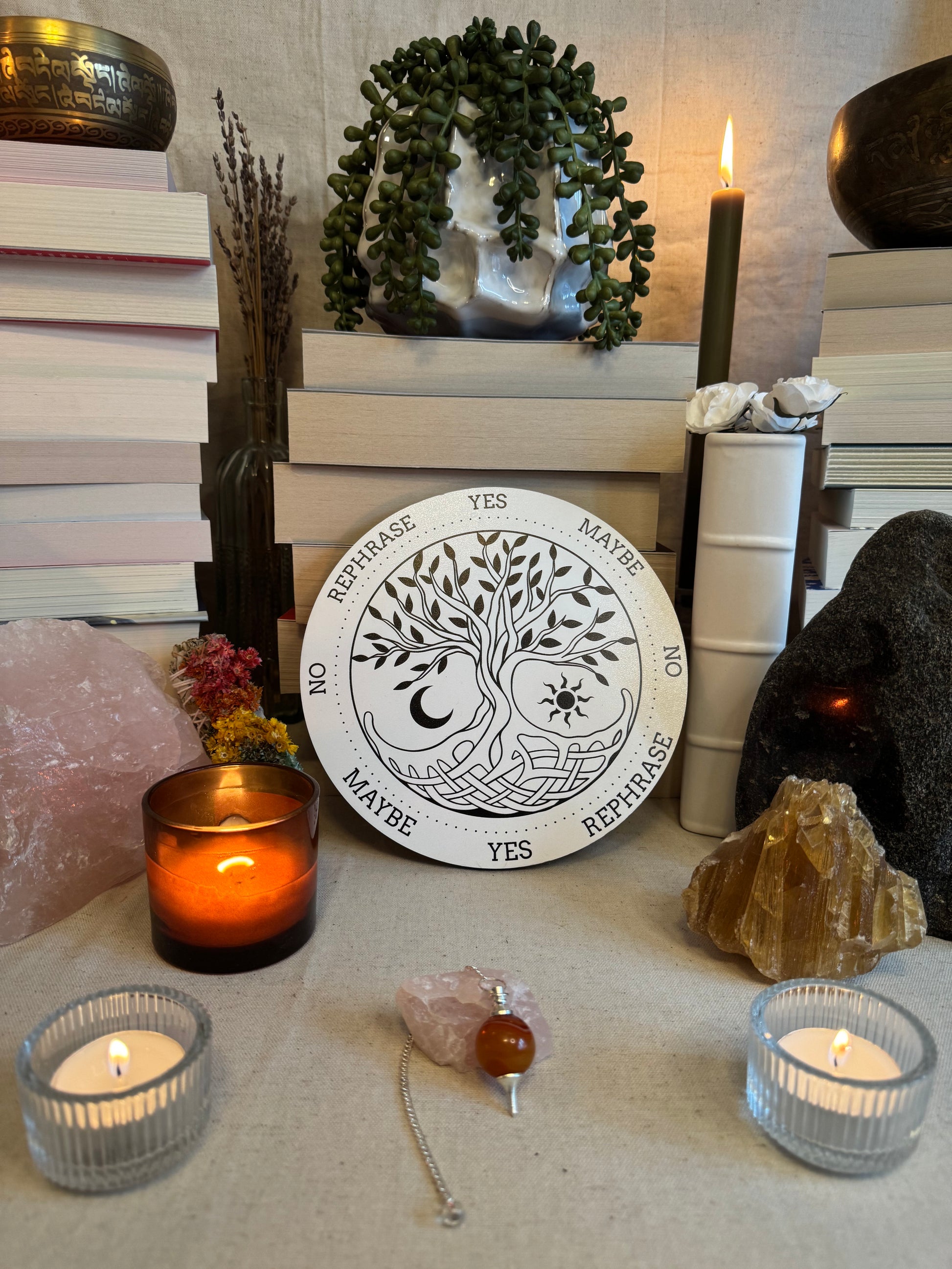 Want a little extra insight with your answer? Add an oracle card for a quick hit of intuitive guidance. You’ll get a card photo and a short interpretation to go with your pendulum response.
